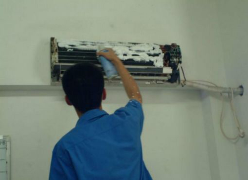 | 长安空调维修师傅给长安用户上门维修清洗空调。 |